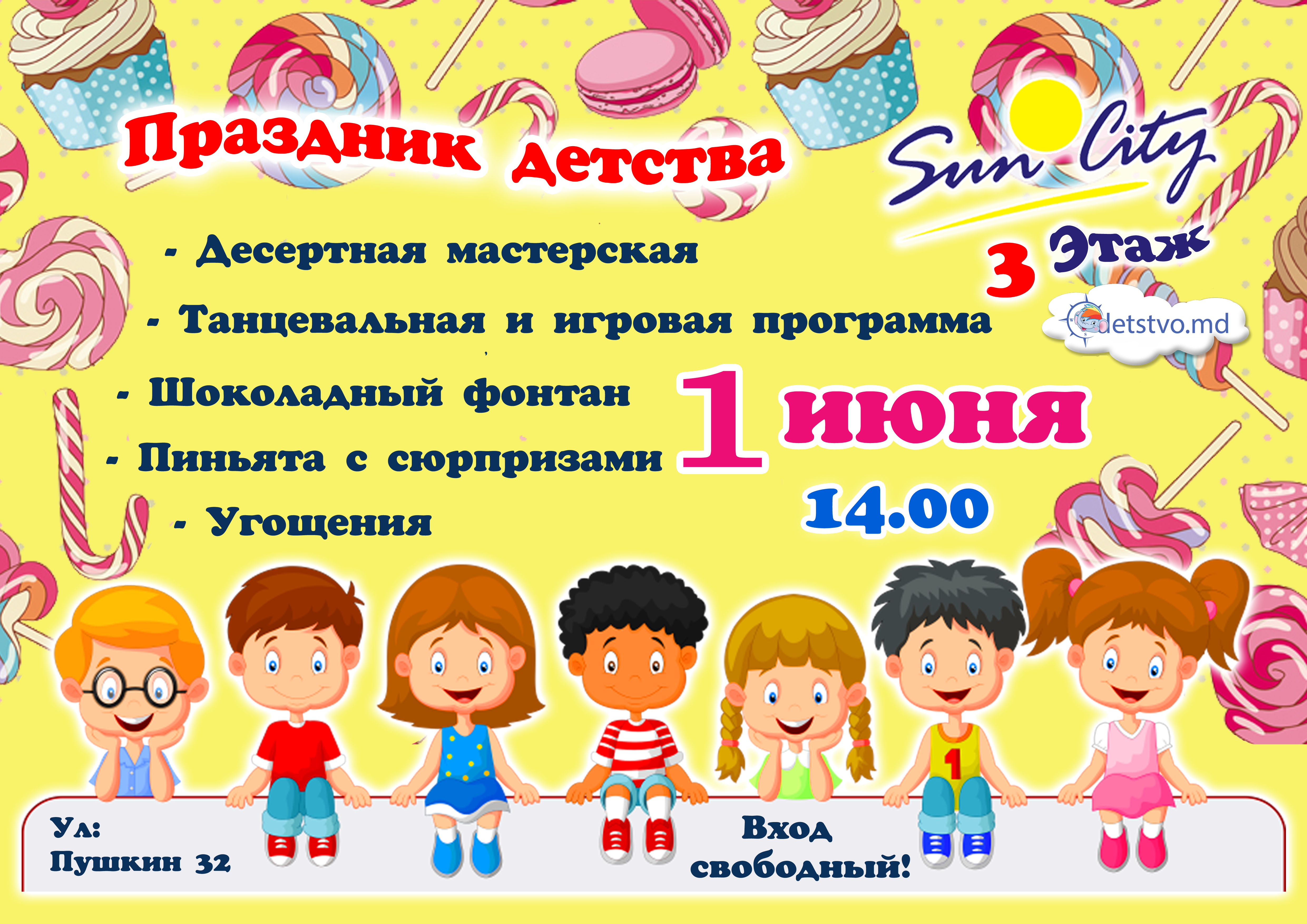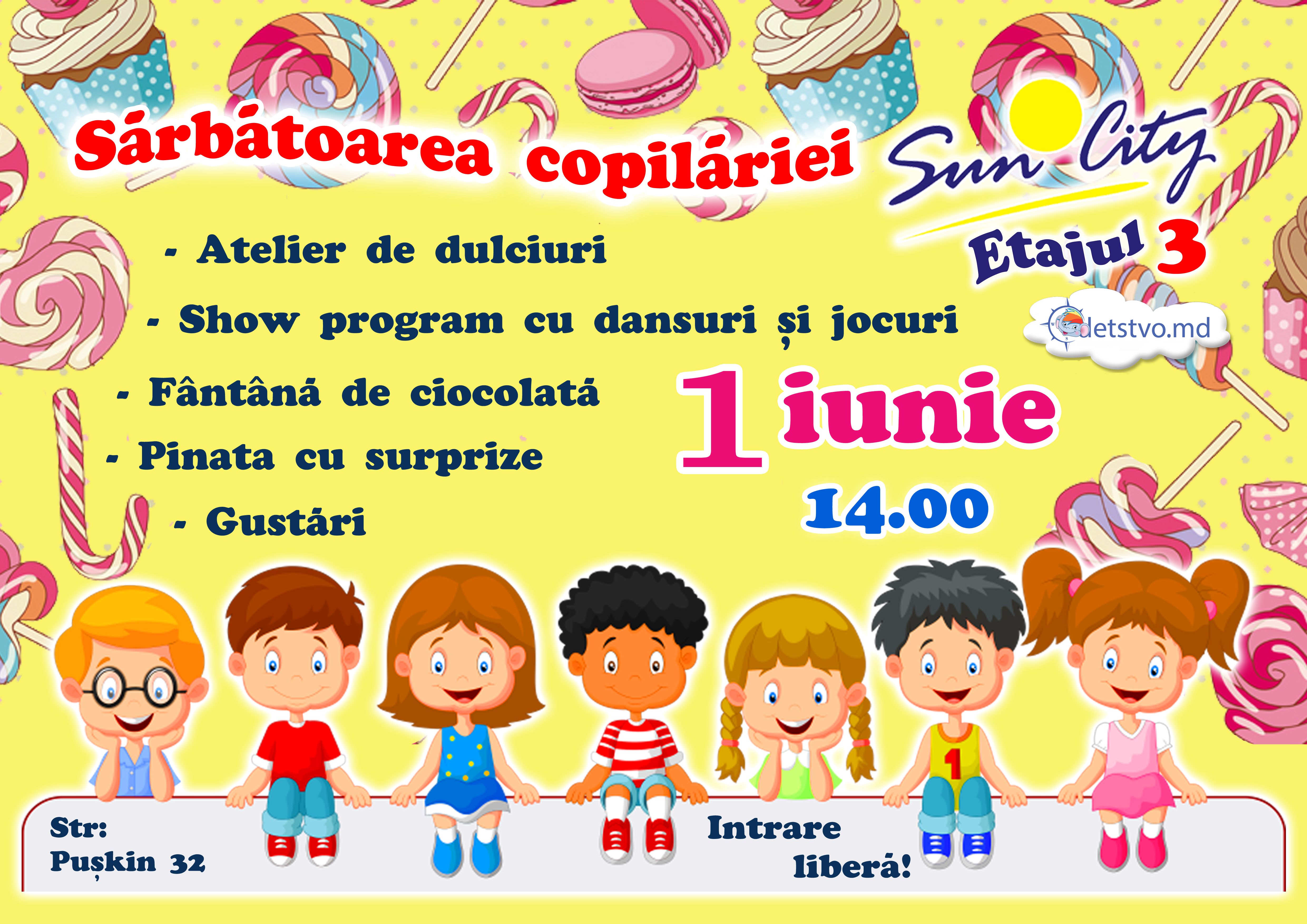 (RO) Dragi copii! CC «Sun City» vă felicită cu multașteptata sărbătoare a copilăriei — Ziua Internațională a Copiilor!