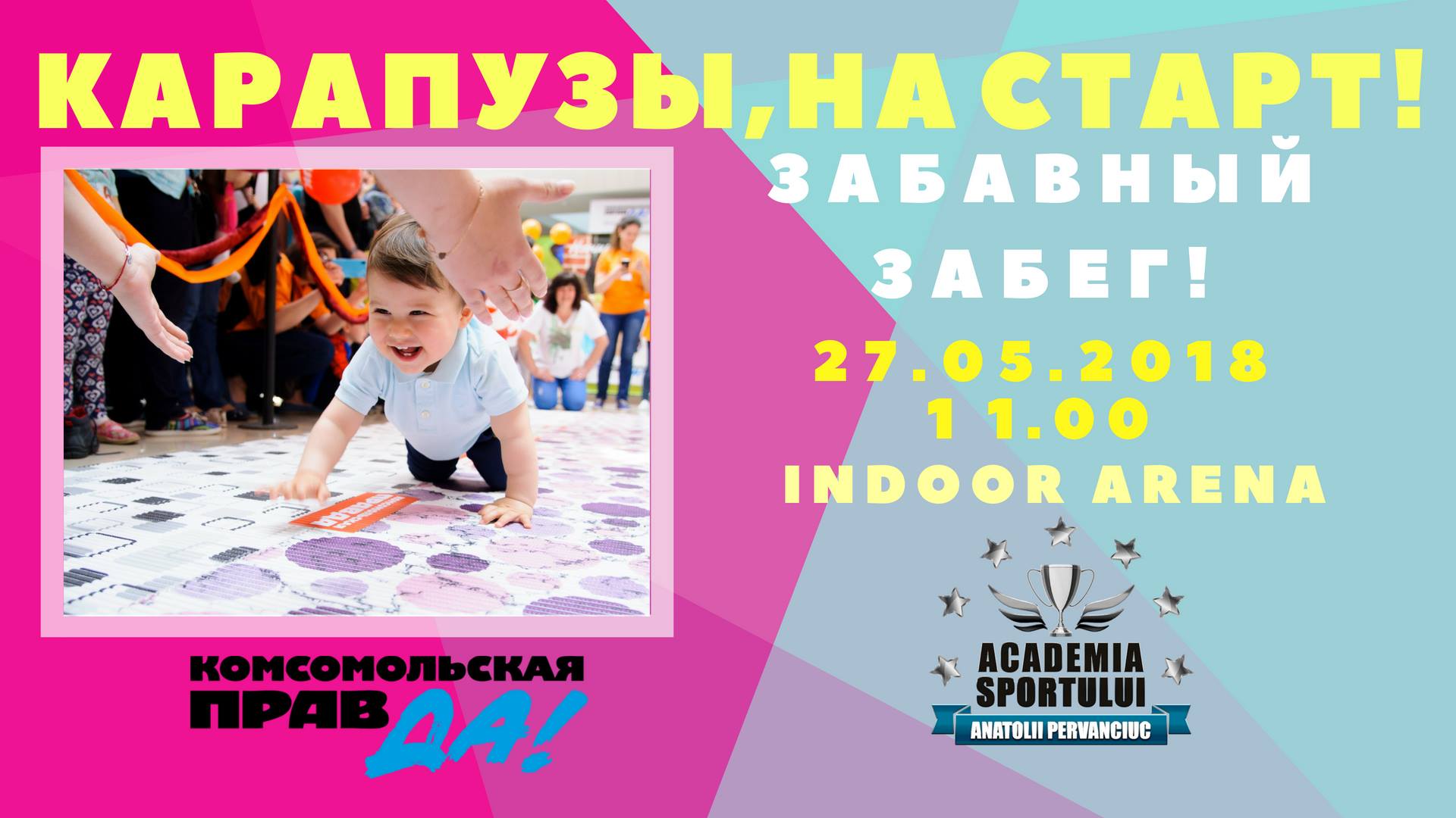 - Забег карапузов. 11.00-13.00. Вход свободный! Организаторы: «Комсомольская правда» и Академия спорта А.Перванчука. Приглашаются карапузики от 9 месяцев до 3-х лет, а также их старшие братики и сестрички, мамочки и папочки на забавные соревнования! Где можно будет весело отдохнуть всей семьей, поучаствовать в конкурсах, сделать красивые фотографии на память и быть может одержать победу в городском чемпионате по ползанию! Клоуны, любимые герои , подарки, музыкальные выступления и, конечно, медали ждут маленьких спортсменов на традиционном мероприятии «Карапузы, на старт!» Регистрируйтесь по телефону (022) 23 48 35 или присылайте письма на [email protected] Регистрация продлится до 24 мая! Адрес: бул. Гагарина, 14 .Fitness Club Alexia. Источник: facebook