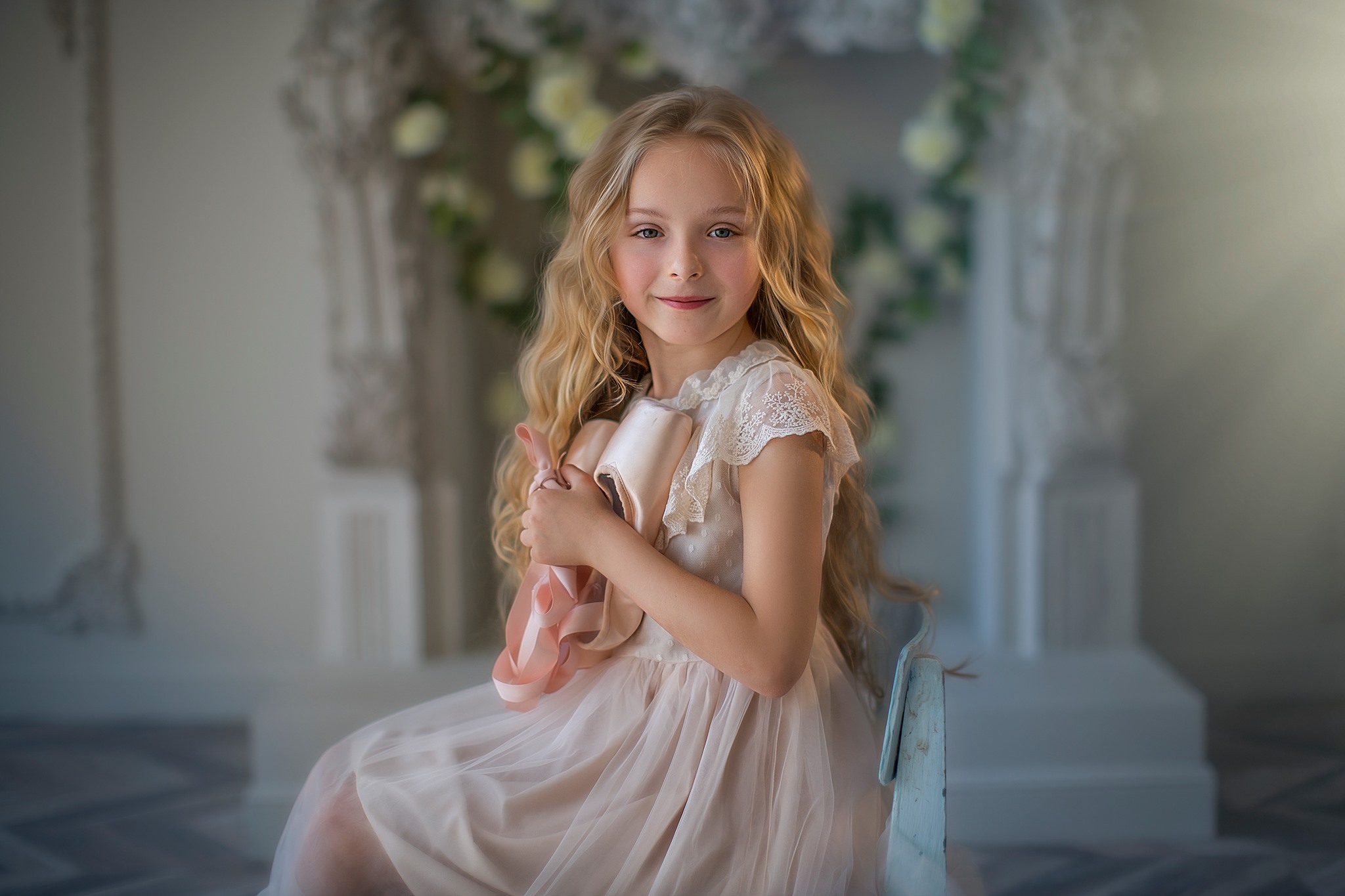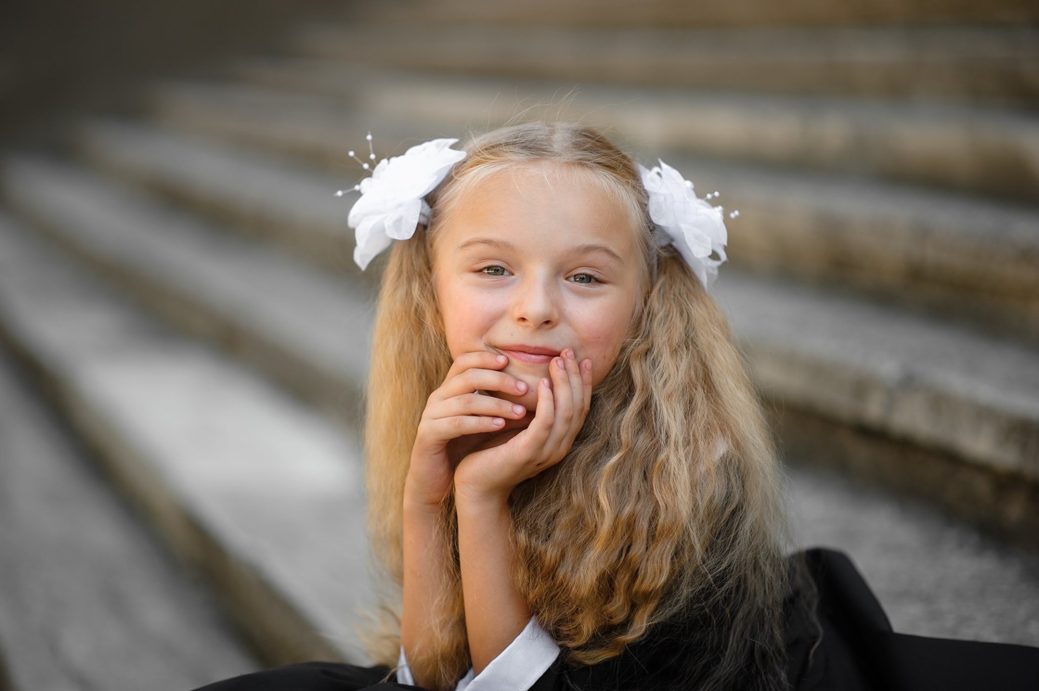 -Улыбнись! Ты такая красивая! Ты делаешь все правильно! У тебя все получится! Посмотри, как на тебе красиво сидит вуалетка! Ты-настоящая Принцесса!- я присела возле нее и начала нашептывать ей разные «волшебные слова», которых очень много у взрослых людей и эти взрослые искренне произносят их, чтобы детки расправляли крылышки, растущие у них за спиной.