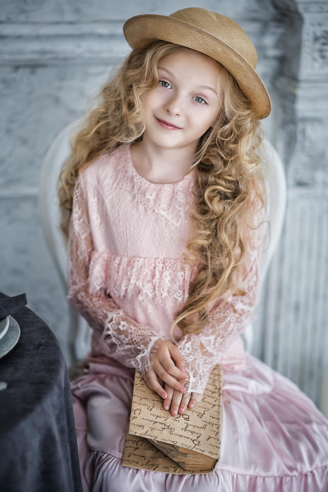 Я готовила к показу детской моды детские вуалетки и ободки . Моими моделями были детки-модели Dani Kristine. За ободком ко мне подошла милая девочка с пшеничными волосами. На меня смотрели грустные детские глаза- девочка волновалась перед показом. Я ее сразу про себя прозвала- Принцесса Несмеяна.